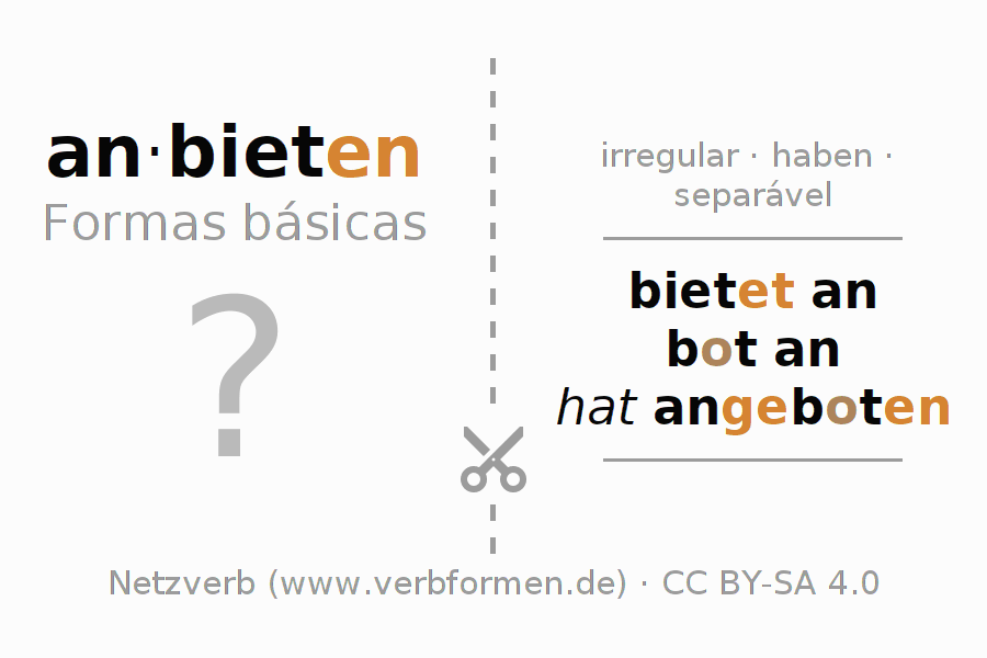 Instruções: Imprimir e recortar os flashcards do verbo anbieten. Em seguida, misture os diversos cartões. Retire um deles. As informações devem ser memorizadas. Para verificar a resposta utilize as informações nas fichas de aprendizagem.