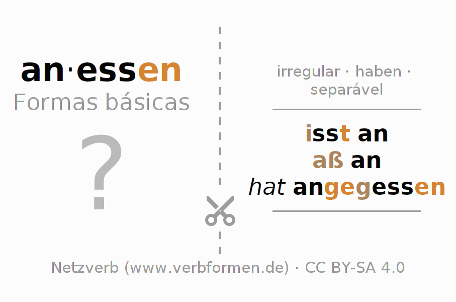 Com os flashcards, a conjugação dos verbos em alemão pode-se aprender e treinar. Para fazer isso, siga as tarefas nas folhas de aprendizado do verbo anessen. As formas verbais devem ser resolvidas de cabeça. Posteriormente são comparadas com as informações nos cartões. Se concordar, você confirma seu resultado de aprendizado. Se houver um erro, você deve utilizar as informações para memorizar os cartões desconhecidos. Normalmente, imprima o arquivo em PDF dos cartões de aprendizagem e dobre-os conforme especificado. Poderá então colocá-los em uma pilha com outros verbos que deseja aprender. Há também muitas outras planilhas planilhas para o verbo anessen. Todo o material está disponível nos Recursos Educacionais Abertos (OER) sob licença CC BY-SA 4.0 e pode ser usado gratuitamente.