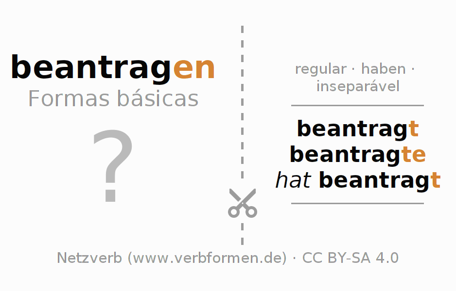 Instruções: Imprimir e recortar os flashcards do verbo beantragen. Em seguida, misture os diversos cartões. Retire um deles. As informações devem ser memorizadas. Para verificar a resposta utilize as informações nas fichas de aprendizagem.