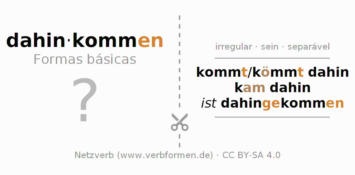 Instruções: Imprimir e recortar os flashcards do verbo dahinkommen. Em seguida, misture os diversos cartões. Retire um deles. As informações devem ser memorizadas. Para verificar a resposta utilize as informações nas fichas de aprendizagem.