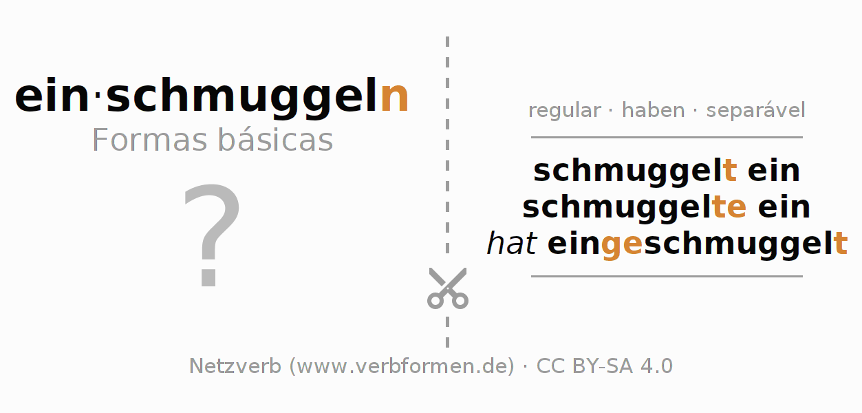 Instruções: Imprimir e recortar os flashcards do verbo einschmuggeln. Em seguida, misture os diversos cartões. Retire um deles. As informações devem ser memorizadas. Para verificar a resposta utilize as informações nas fichas de aprendizagem.