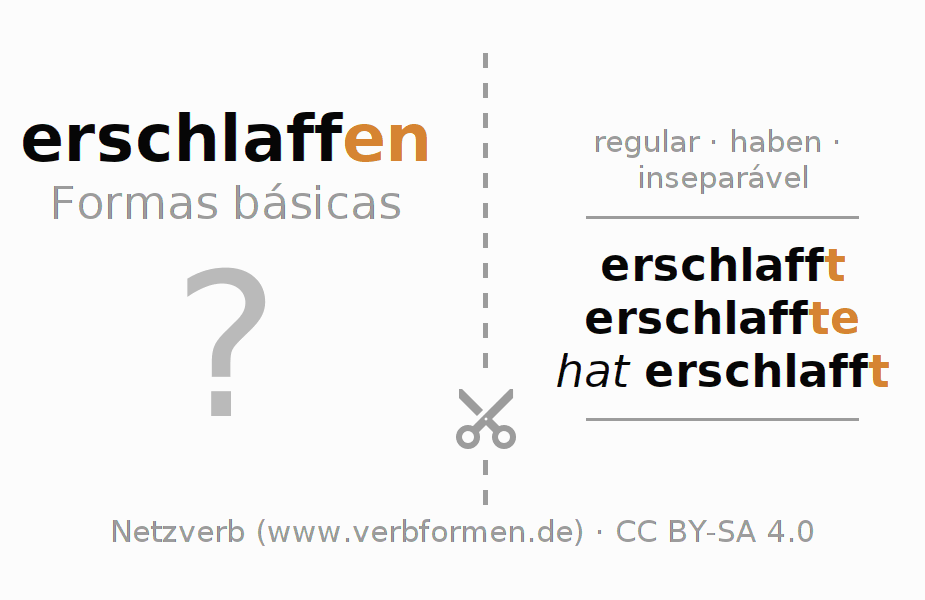 Com os flashcards, a conjugação dos verbos em alemão pode-se aprender e treinar. Para fazer isso, siga as tarefas nas folhas de aprendizado do verbo erschlaffen. As formas verbais devem ser resolvidas de cabeça. Posteriormente são comparadas com as informações nos cartões. Se concordar, você confirma seu resultado de aprendizado. Se houver um erro, você deve utilizar as informações para memorizar os cartões desconhecidos. Normalmente, imprima o arquivo em PDF dos cartões de aprendizagem e dobre-os conforme especificado. Poderá então colocá-los em uma pilha com outros verbos que deseja aprender. Há também muitas outras planilhas planilhas para o verbo erschlaffen. Todo o material está disponível nos Recursos Educacionais Abertos (OER) sob licença CC BY-SA 4.0 e pode ser usado gratuitamente.