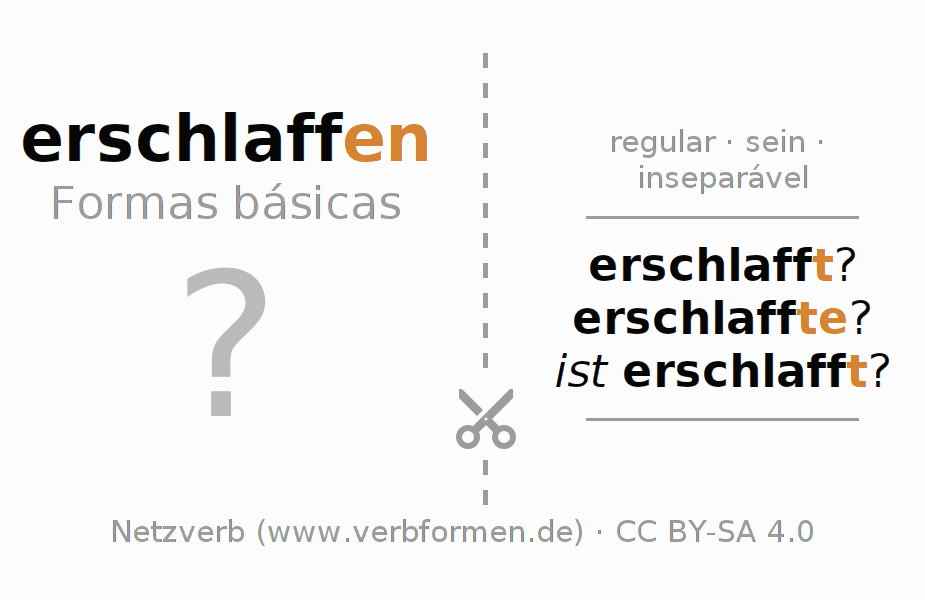 Instruções: Imprimir e recortar os flashcards do verbo erschlaffen. Em seguida, misture os diversos cartões. Retire um deles. As informações devem ser memorizadas. Para verificar a resposta utilize as informações nas fichas de aprendizagem.