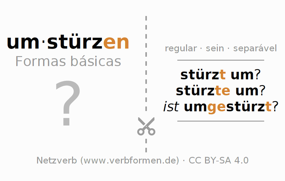 Instruções: Imprimir e recortar os flashcards do verbo umstürzen. Em seguida, misture os diversos cartões. Retire um deles. As informações devem ser memorizadas. Para verificar a resposta utilize as informações nas fichas de aprendizagem.