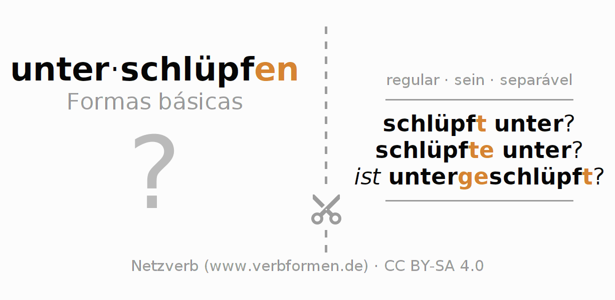 Instruções: Imprimir e recortar os flashcards do verbo unterschlüpfen. Em seguida, misture os diversos cartões. Retire um deles. As informações devem ser memorizadas. Para verificar a resposta utilize as informações nas fichas de aprendizagem.