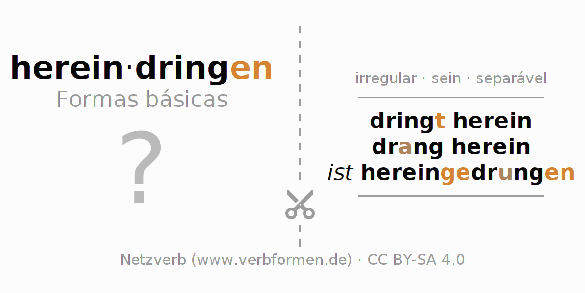 Instruções: Imprimir e recortar os flashcards do verbo hereindringen. Em seguida, misture os diversos cartões. Retire um deles. As informações devem ser memorizadas. Para verificar a resposta utilize as informações nas fichas de aprendizagem.