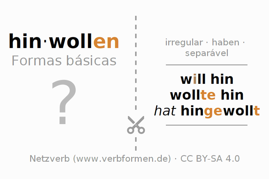 Instruções: Imprimir e recortar os flashcards do verbo hinwollen. Em seguida, misture os diversos cartões. Retire um deles. As informações devem ser memorizadas. Para verificar a resposta utilize as informações nas fichas de aprendizagem.