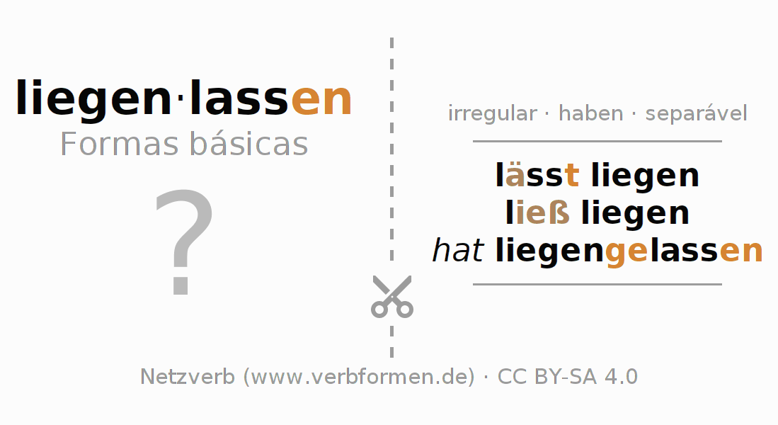 Instruções: Imprimir e recortar os flashcards do verbo liegenlassen. Em seguida, misture os diversos cartões. Retire um deles. As informações devem ser memorizadas. Para verificar a resposta utilize as informações nas fichas de aprendizagem.