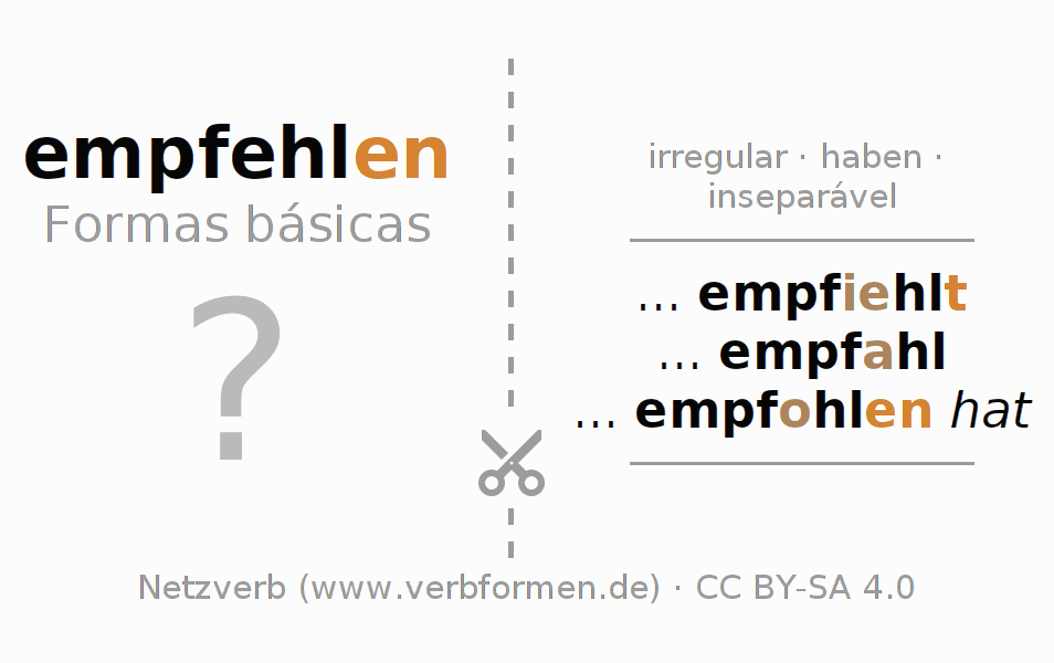 Instruções: Imprimir e recortar os flashcards do verbo empfehlen. Em seguida, misture os diversos cartões. Retire um deles. As informações devem ser memorizadas. Para verificar a resposta utilize as informações nas fichas de aprendizagem.