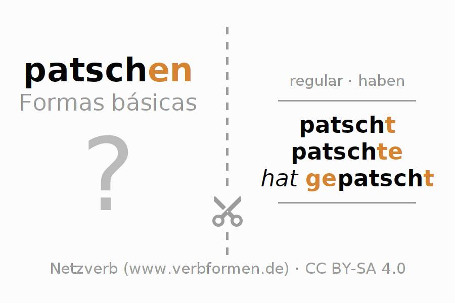Instruções: Imprimir e recortar os flashcards do verbo patschen. Em seguida, misture os diversos cartões. Retire um deles. As informações devem ser memorizadas. Para verificar a resposta utilize as informações nas fichas de aprendizagem.