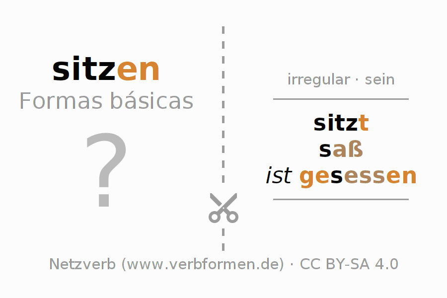 Instruções: Imprimir e recortar os flashcards do verbo sitzen. Em seguida, misture os diversos cartões. Retire um deles. As informações devem ser memorizadas. Para verificar a resposta utilize as informações nas fichas de aprendizagem.