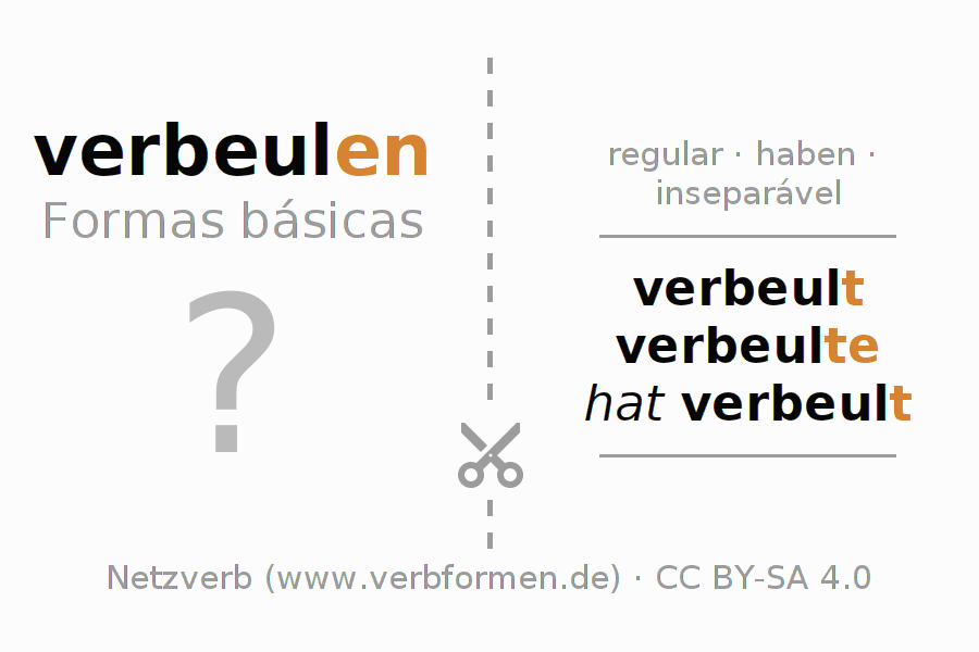 Instruções: Imprimir e recortar os flashcards do verbo verbeulen. Em seguida, misture os diversos cartões. Retire um deles. As informações devem ser memorizadas. Para verificar a resposta utilize as informações nas fichas de aprendizagem.