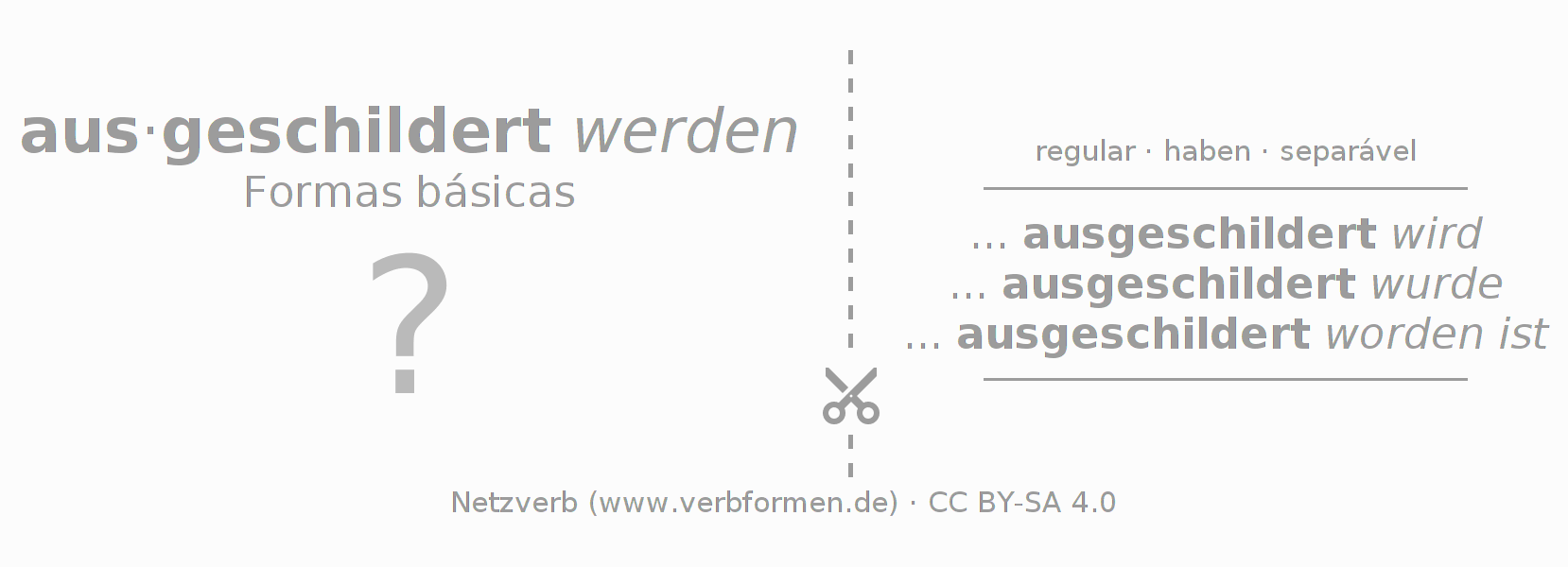 Instruções: Imprimir e recortar os flashcards do verbo ausschildern. Em seguida, misture os diversos cartões. Retire um deles. As informações devem ser memorizadas. Para verificar a resposta utilize as informações nas fichas de aprendizagem.