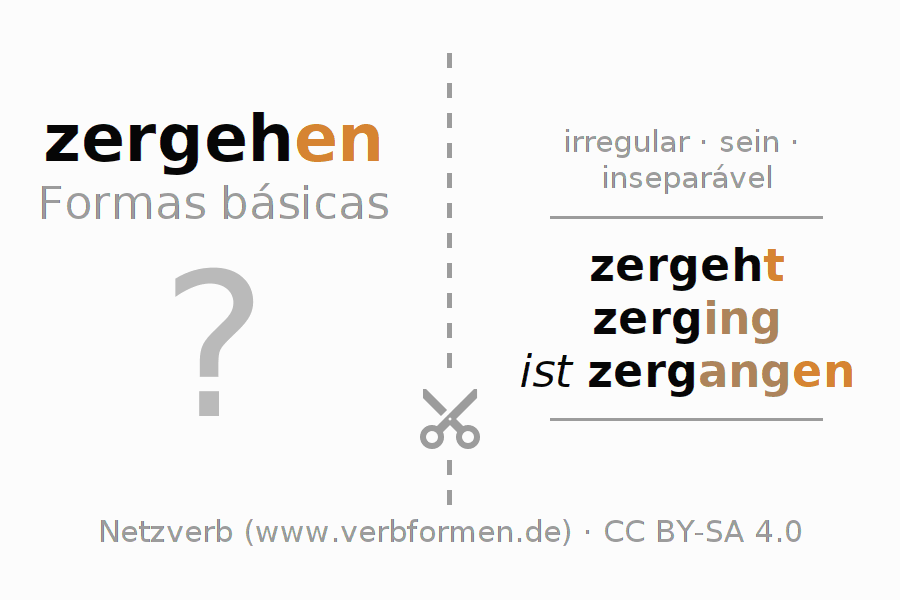 Instruções: Imprimir e recortar os flashcards do verbo zergehen. Em seguida, misture os diversos cartões. Retire um deles. As informações devem ser memorizadas. Para verificar a resposta utilize as informações nas fichas de aprendizagem.