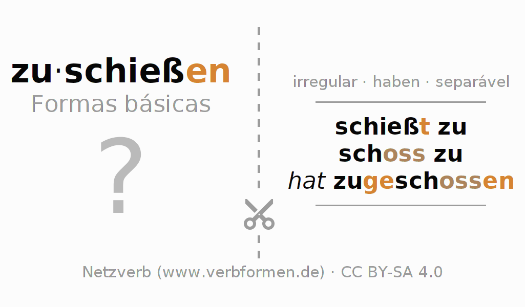 Instruções: Imprimir e recortar os flashcards do verbo zuschießen. Em seguida, misture os diversos cartões. Retire um deles. As informações devem ser memorizadas. Para verificar a resposta utilize as informações nas fichas de aprendizagem.