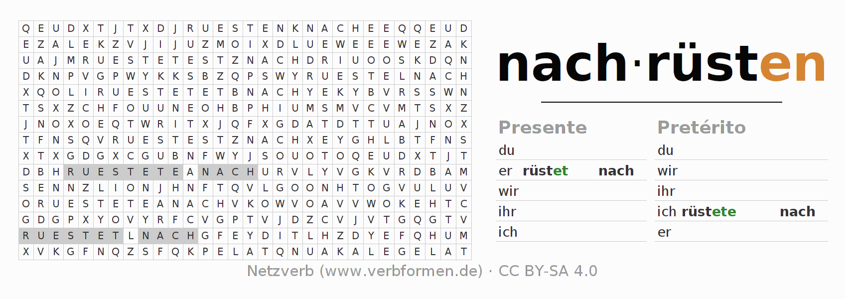 Caça-palavras para todas as formas do verbo nachrüsten