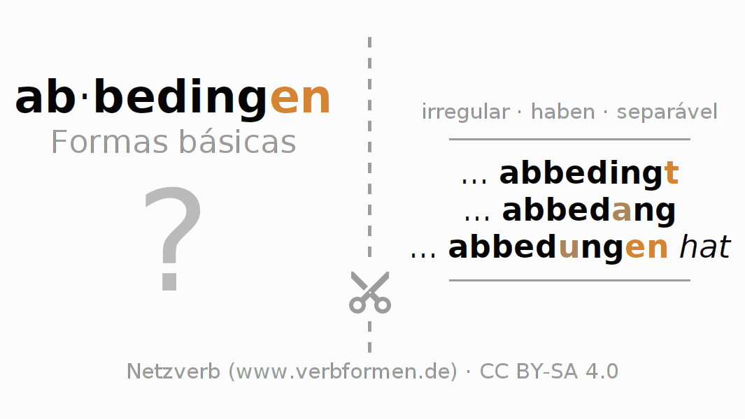 Tabela de conjugação para todas as formas verbais do verbo abbedingen