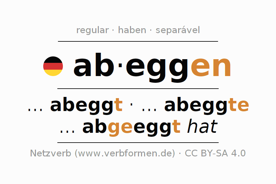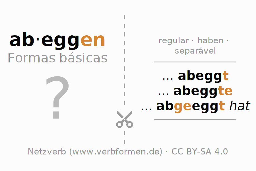 A Tabela de verbo resume todas as formas verbais do verbo abeggen em uma só tabela.