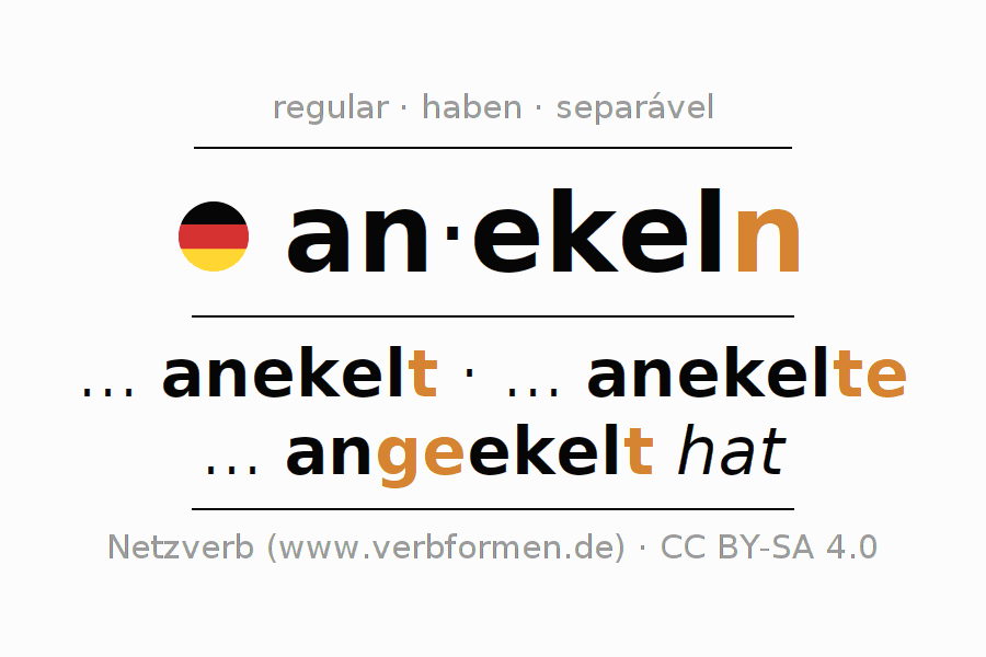 Flashcards, cartões de aprendizagem para todas as formas do verbo anekeln