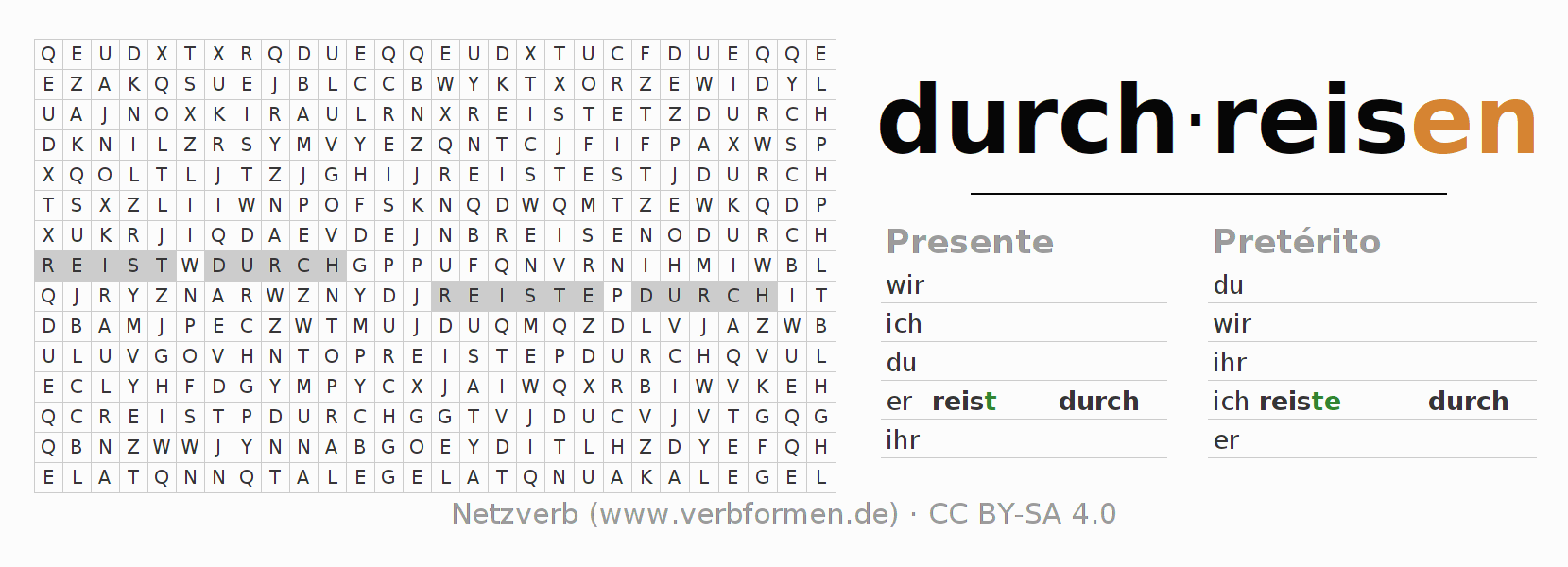 Caça-palavras para todas as formas do verbo durch-reisen (ist)