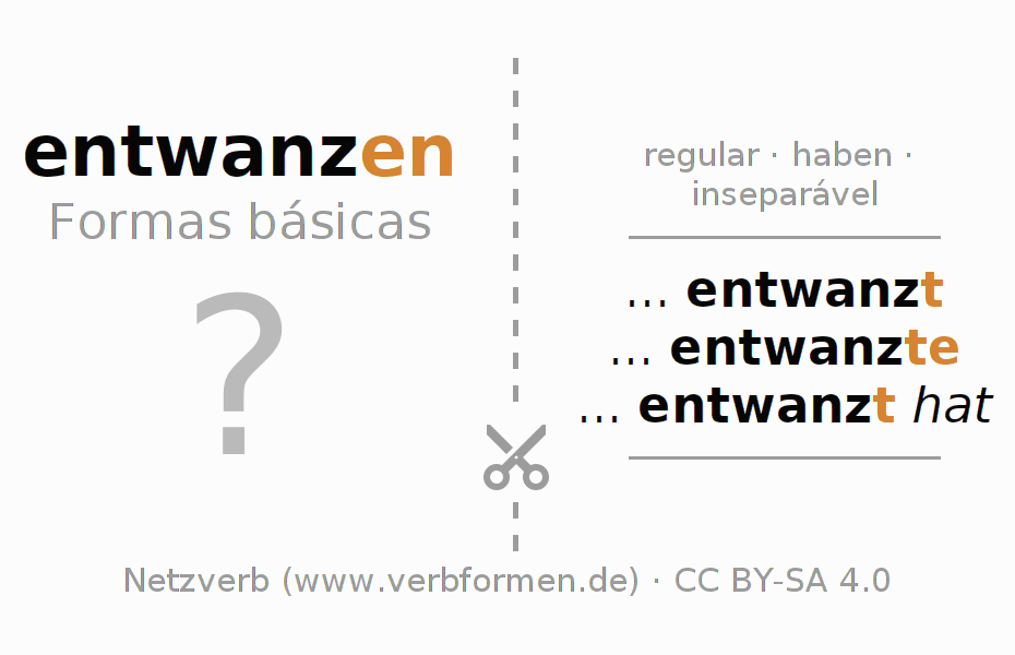 A Tabela de verbo resume todas as formas verbais do verbo entwanzen em uma só tabela.