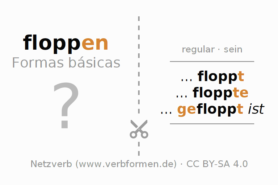 A Tabela de verbo resume todas as formas verbais do verbo floppen em uma só tabela.