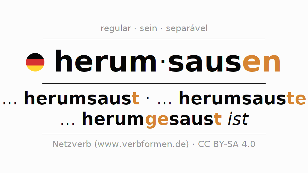 Tabela de conjugação para todas as formas verbais do verbo herumsausen (ist)