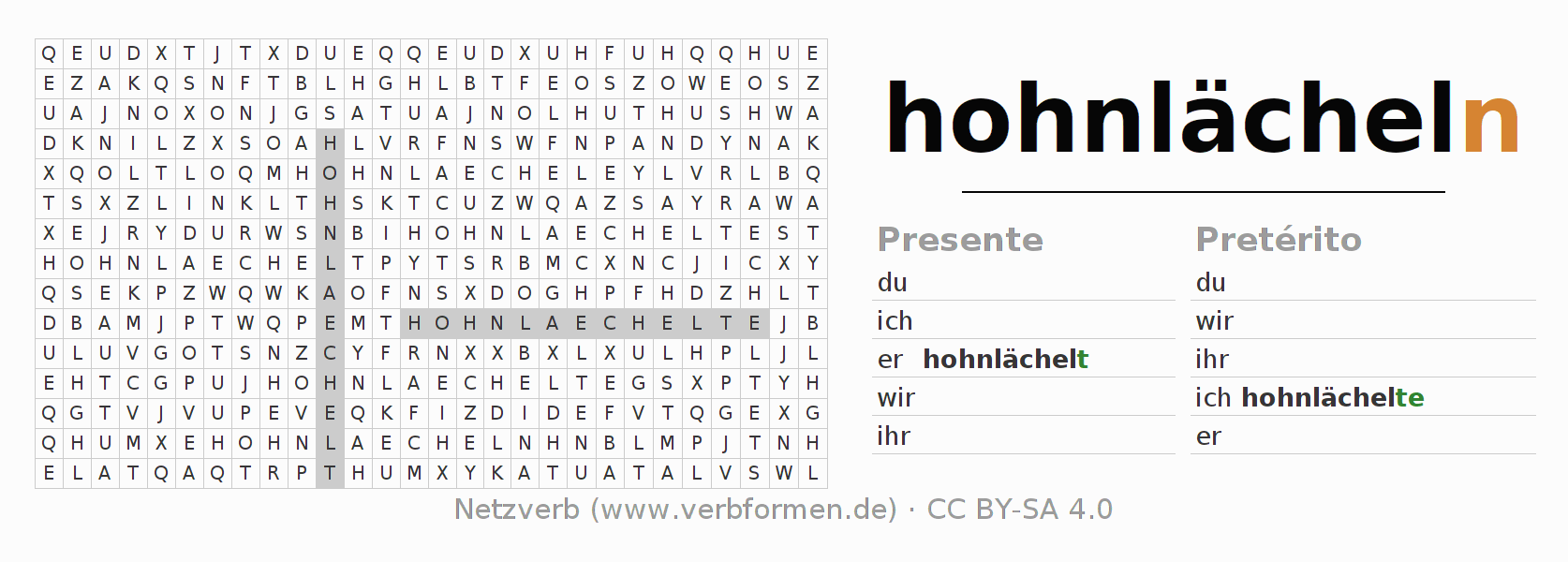 Caça-palavras para todas as formas do verbo hohnlächeln