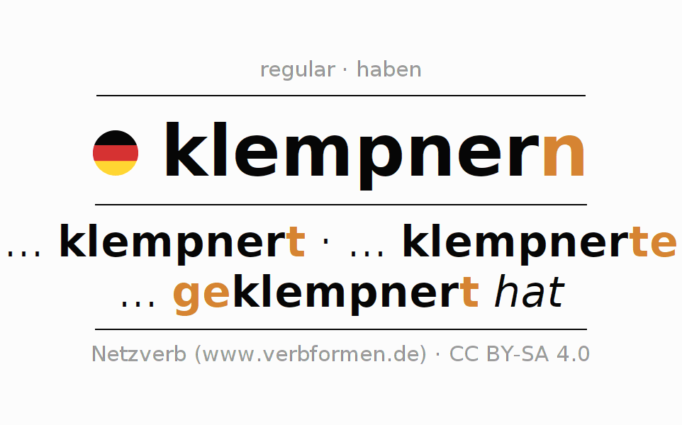 A Tabela de verbo resume todas as formas verbais do verbo klempnern em uma só tabela.