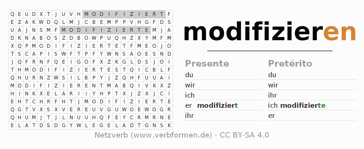 Caça-palavras para todas as formas do verbo modifizieren