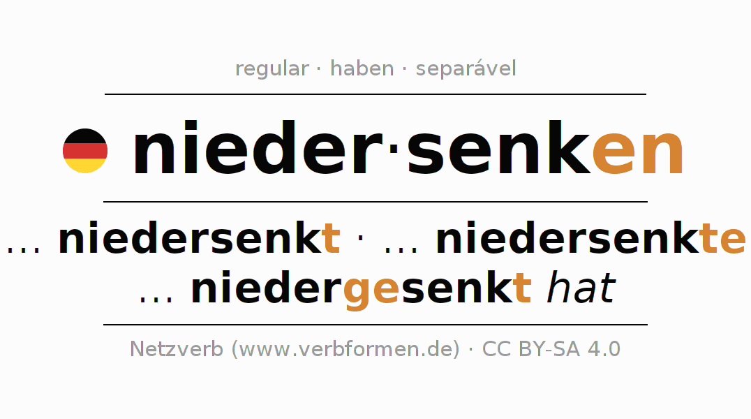 A Tabela de verbo resume todas as formas verbais do verbo niedersenken em uma só tabela.
