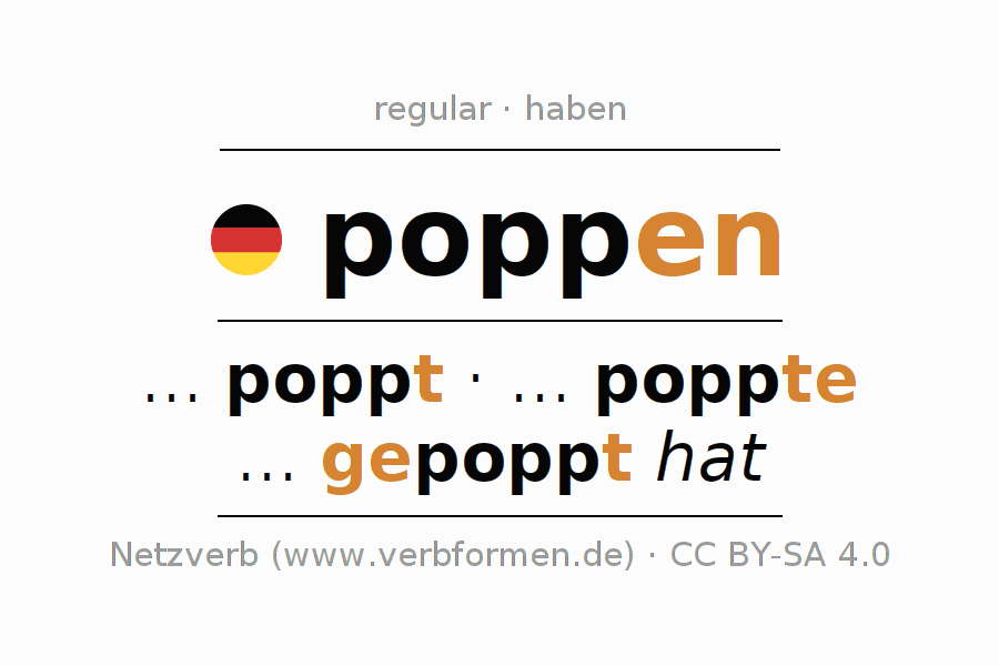 A Tabela de verbo resume todas as formas verbais do verbo poppen em uma só tabela.