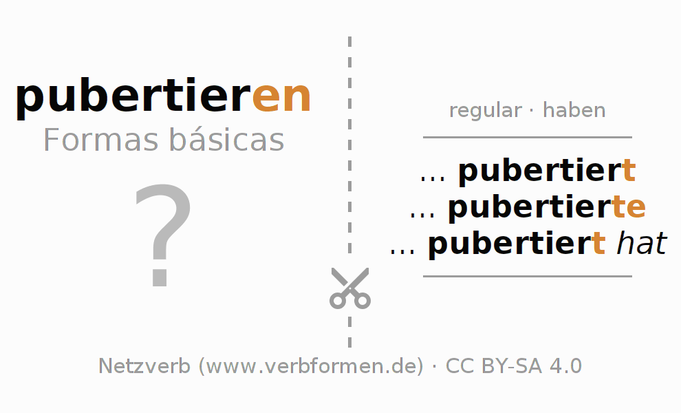 A Tabela de verbo resume todas as formas verbais do verbo pubertieren em uma só tabela.