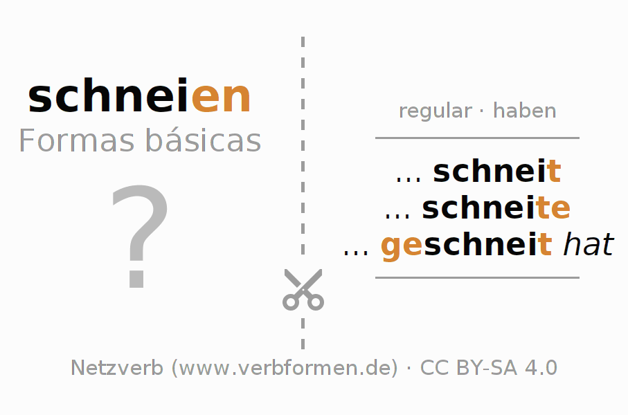 A Tabela de verbo resume todas as formas verbais do verbo schneien em uma só tabela.