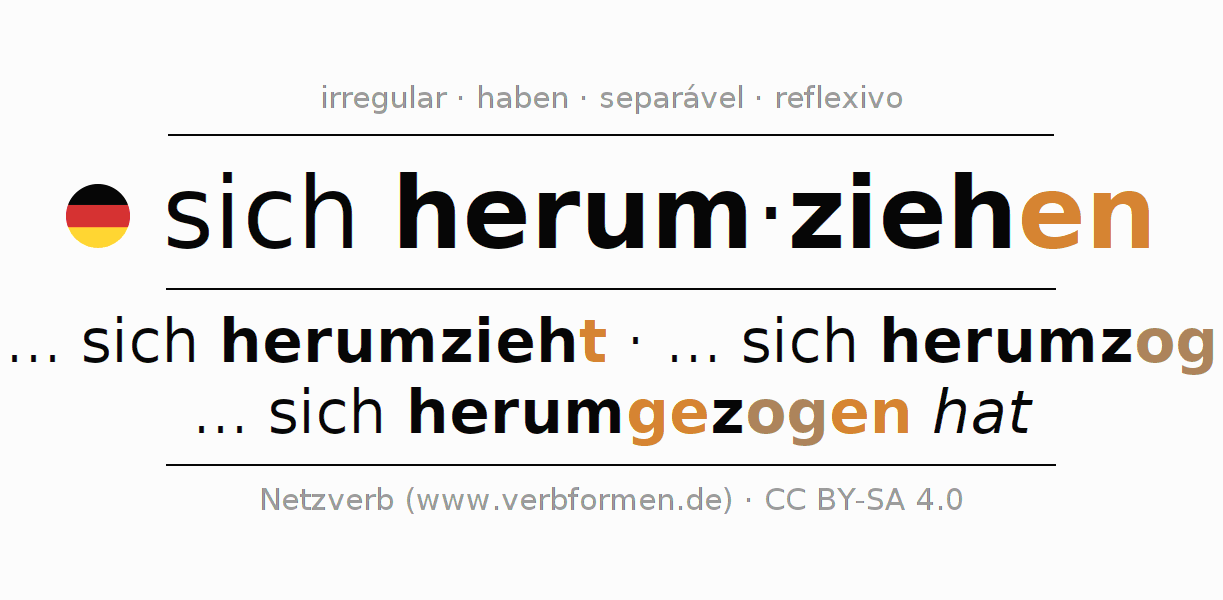 A Tabela de verbo resume todas as formas verbais do verbo sich herumziehen em uma só tabela.