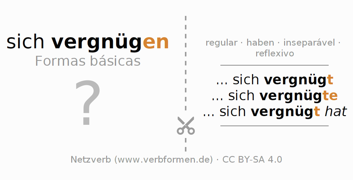 A Tabela de verbo resume todas as formas verbais do verbo sich vergnügen em uma só tabela.