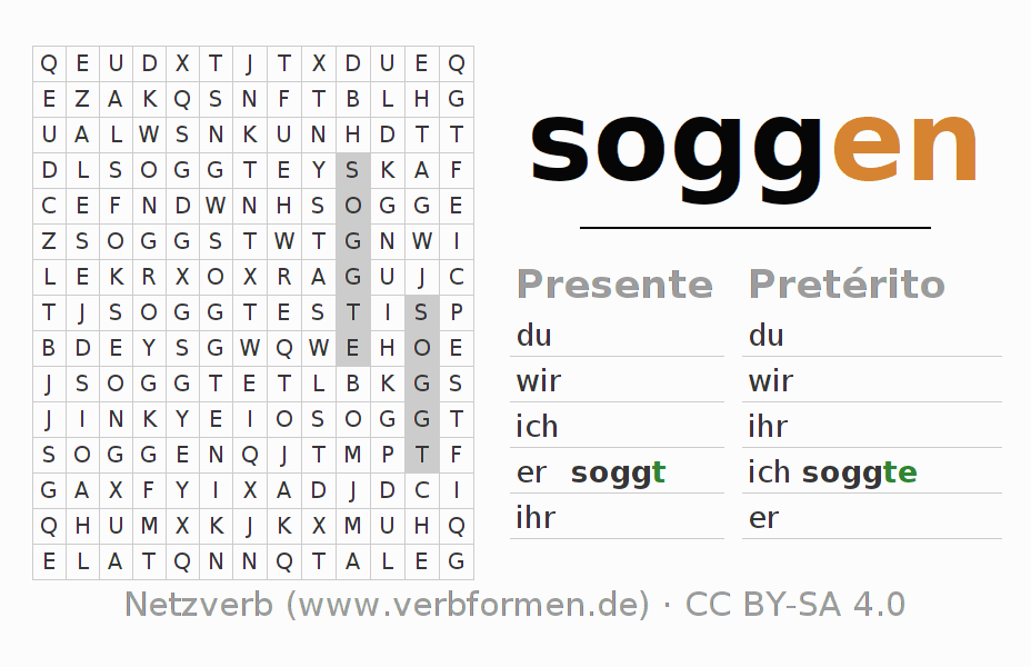 A Tabela de verbo resume todas as formas verbais do verbo soggen em uma só tabela.