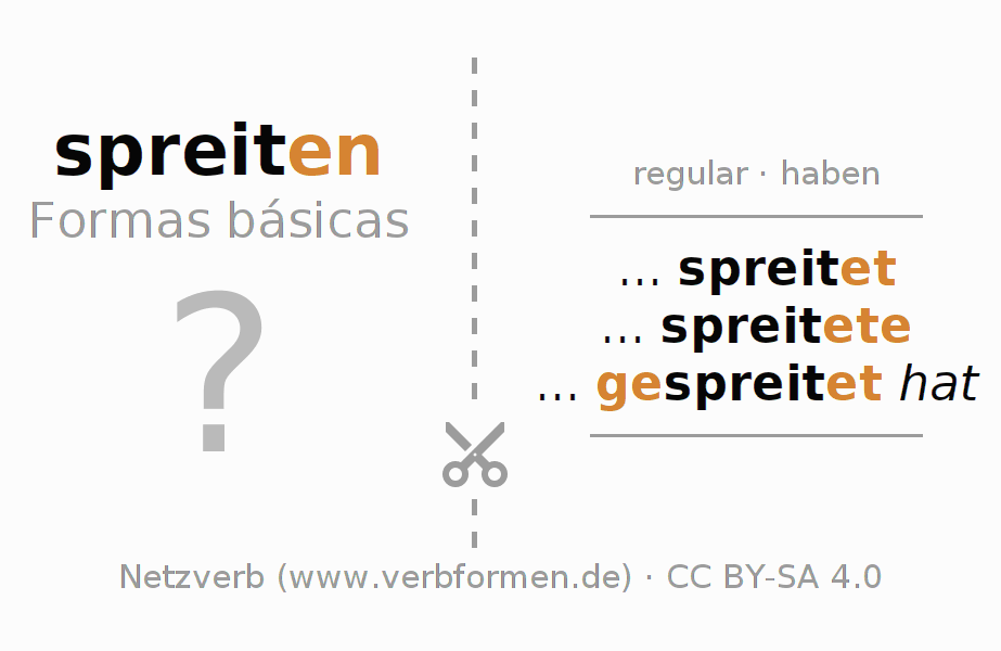 Tabela de conjugação para todas as formas verbais do verbo spreiten