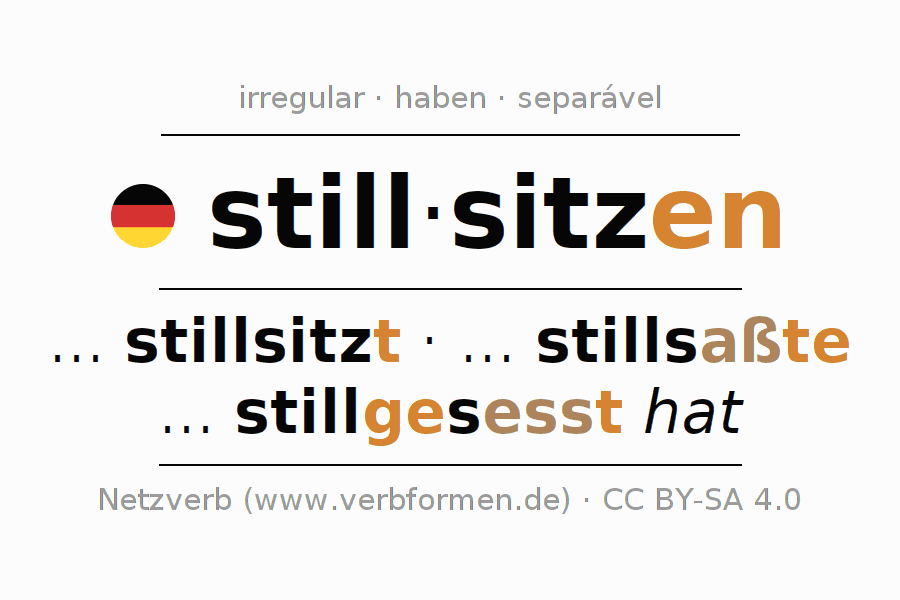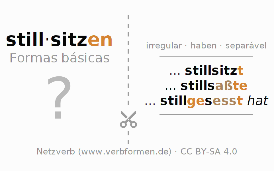 A Tabela de verbo resume todas as formas verbais do verbo stillsitzen em uma só tabela.