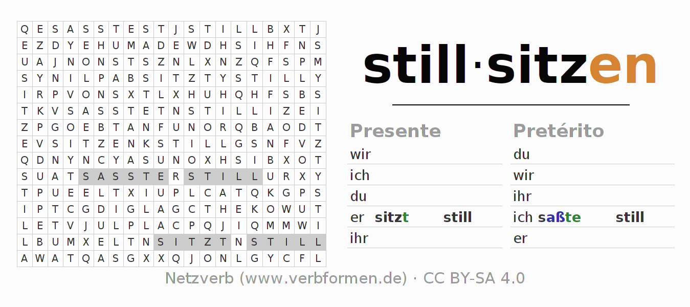 Caça-palavras para todas as formas do verbo stillsitzen (hat)