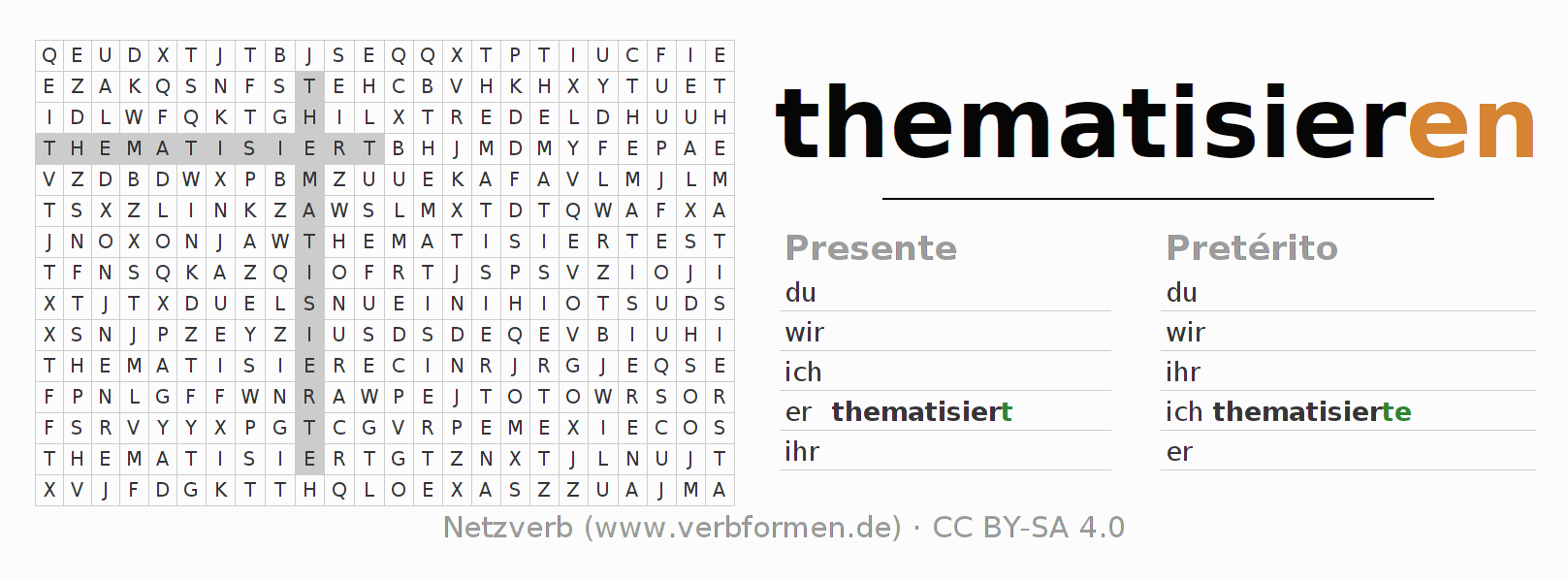 Caça-palavras para todas as formas do verbo thematisieren