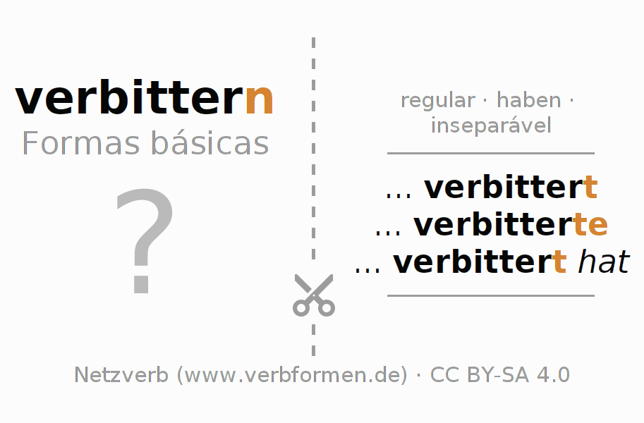 A Tabela de verbo resume todas as formas verbais do verbo verbittern em uma só tabela.