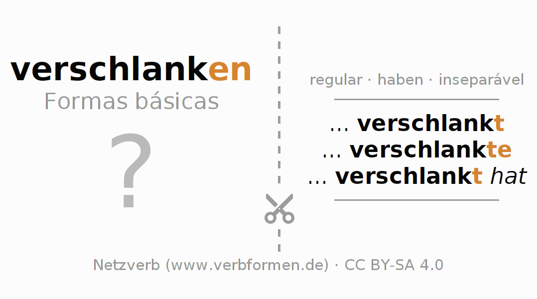 Tabela de conjugação para todas as formas verbais do verbo verschlanken