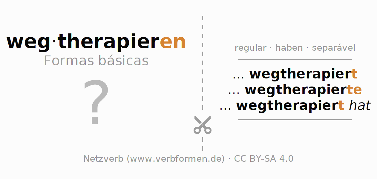 A Tabela de verbo resume todas as formas verbais do verbo wegtherapieren em uma só tabela.