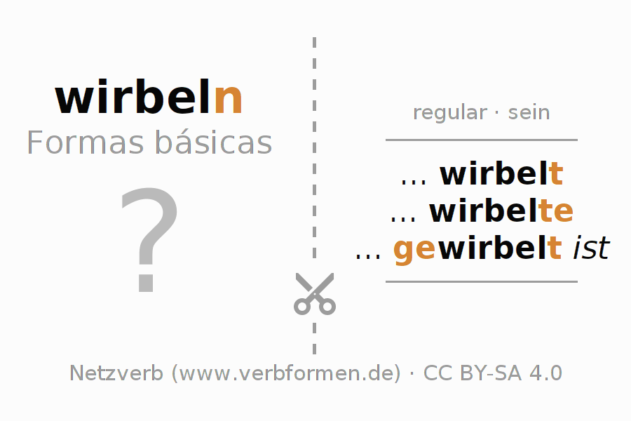 A Tabela de verbo resume todas as formas verbais do verbo wirbeln em uma só tabela.