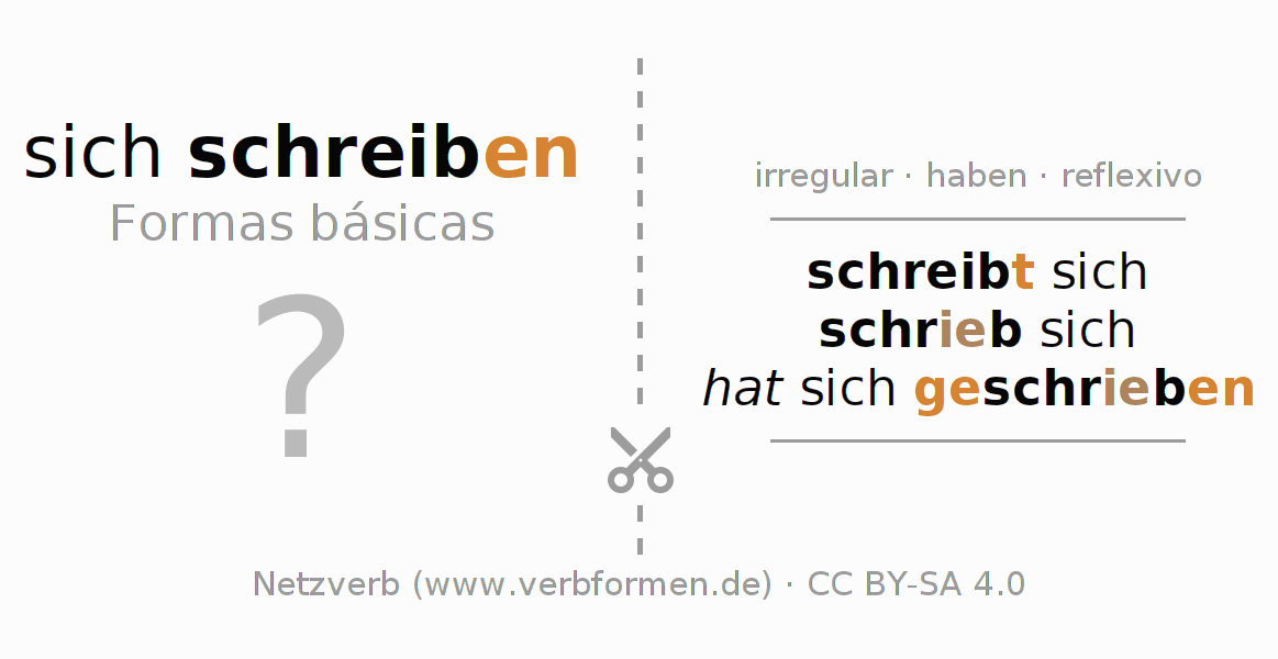 A Tabela de verbo resume todas as formas verbais do verbo sich schreiben em uma só tabela.