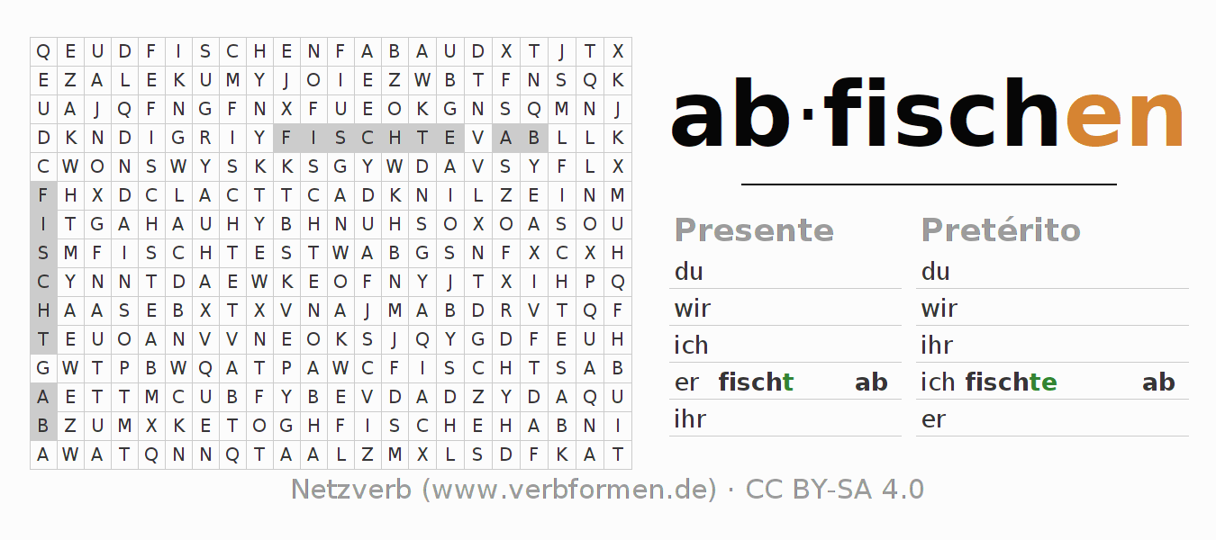 Solução do caça-palavras para a conjugação do verbo abfischen