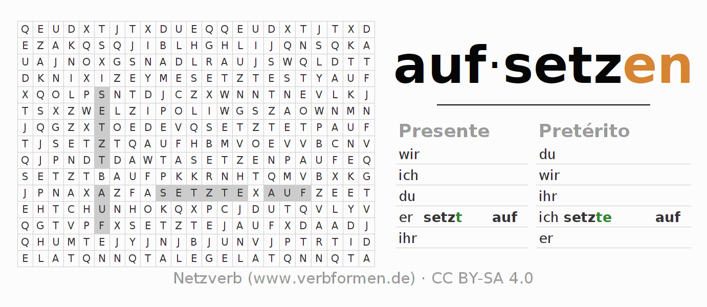 Solução do caça-palavras para a conjugação do verbo aufsetzen