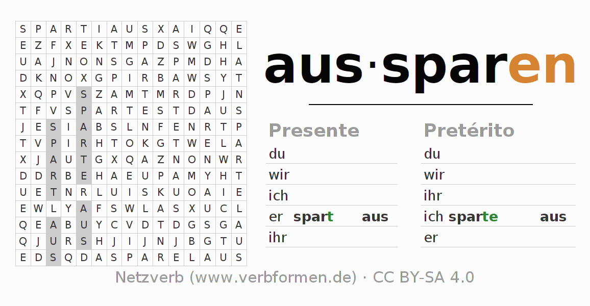 Solução do caça-palavras para a conjugação do verbo aussparen