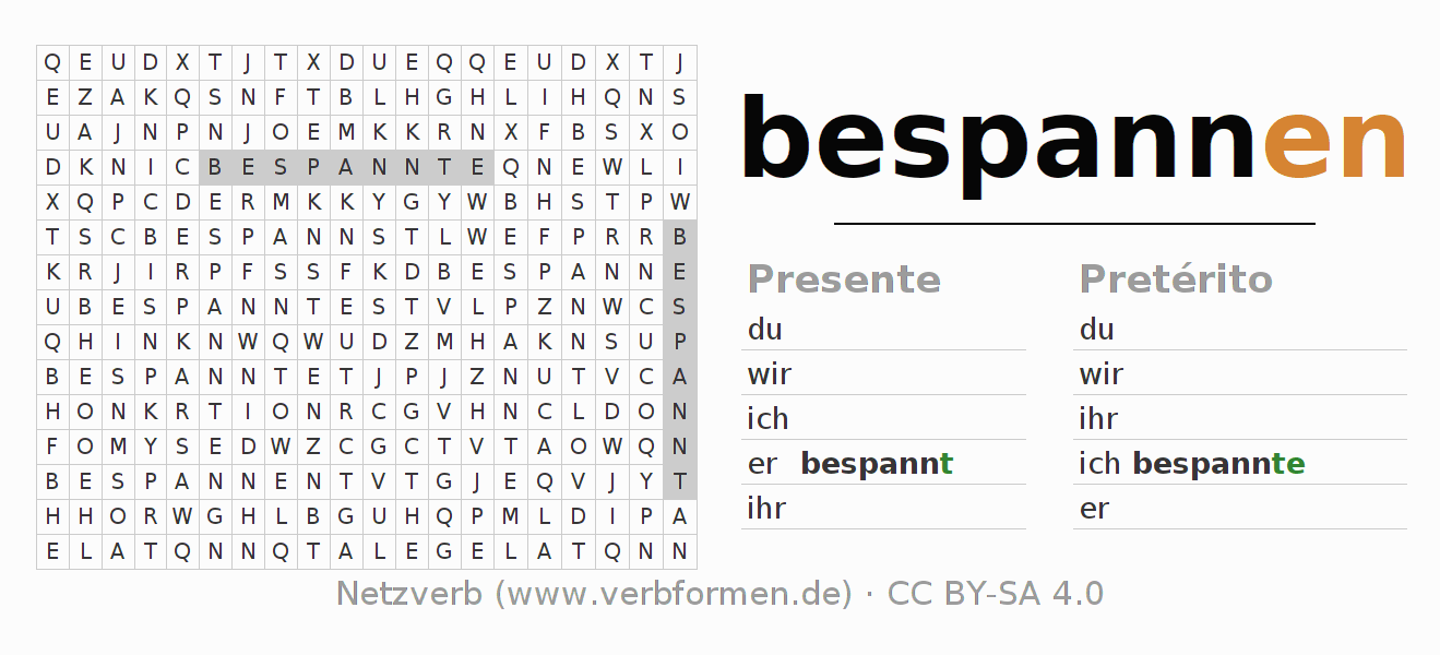 Solução do caça-palavras para a conjugação do verbo bespannen